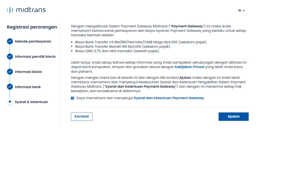 Informasi dari mimin able setelah proses bisnis sedang dalam tahap progress pihak midtrans akan merespon melalui Email kalian yang sudah terdaftar di midtrans